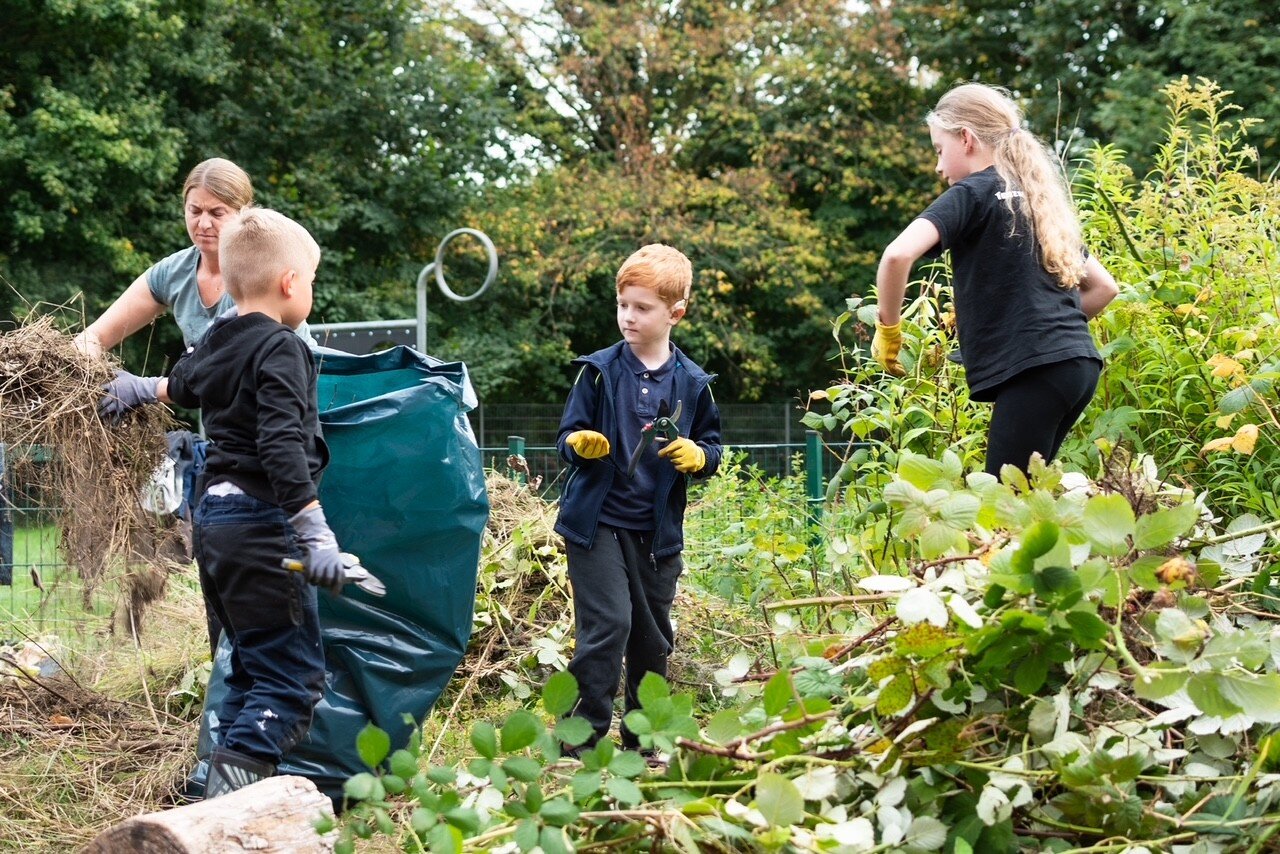 Bei unserer Aktion Schulgarten haben Eltern und Kinder gemeinsam angepackt und den Schulgarten gepflegt. Beete wurden gesäubert und Pflanzen zurückgeschnitten.